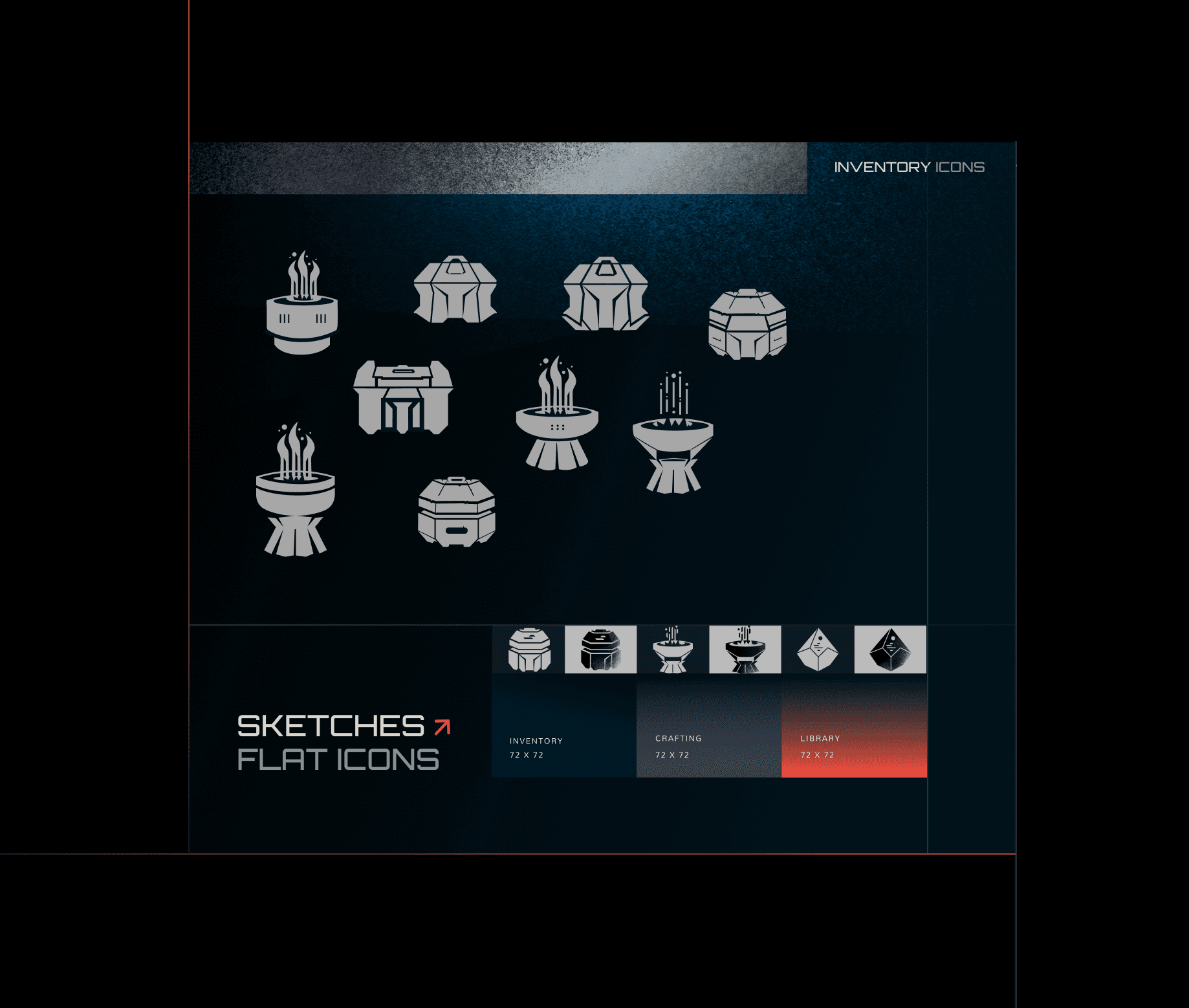 The visual direction leaned into worn desert tones, rusty materials, and grounded sci-fi details to create a more atmospheric and believable look. I used rough textures, subtle overlays, and controlled noise to add depth without overcomplicating the visuals. Even with that level of detail, clarity stayed central, with strong silhouettes, clear hierarchy, and a consistent shape language across the entire icon system.